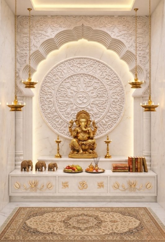 Choosing the perfect marble mandir requires the right balance of design, space, and functionality. A well-designed mandir should feel peaceful, practical, and visually pleasing.